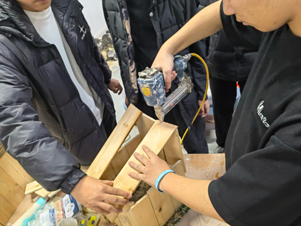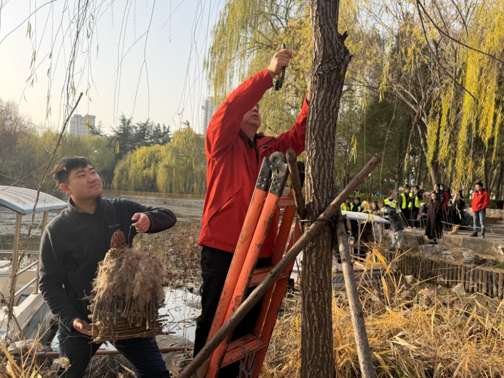 活动中,党员教师牵头组建由设计、手工制作等专业师生构成的志愿服务队。团队通过实地勘察、习性研究和环保材料创新应用,精心设计制作了与自然环境相融的“暖巢”,将生态文明理念落到实处。这既是一次专业的实践锤炼,也是一堂生动的生态文明思政课。