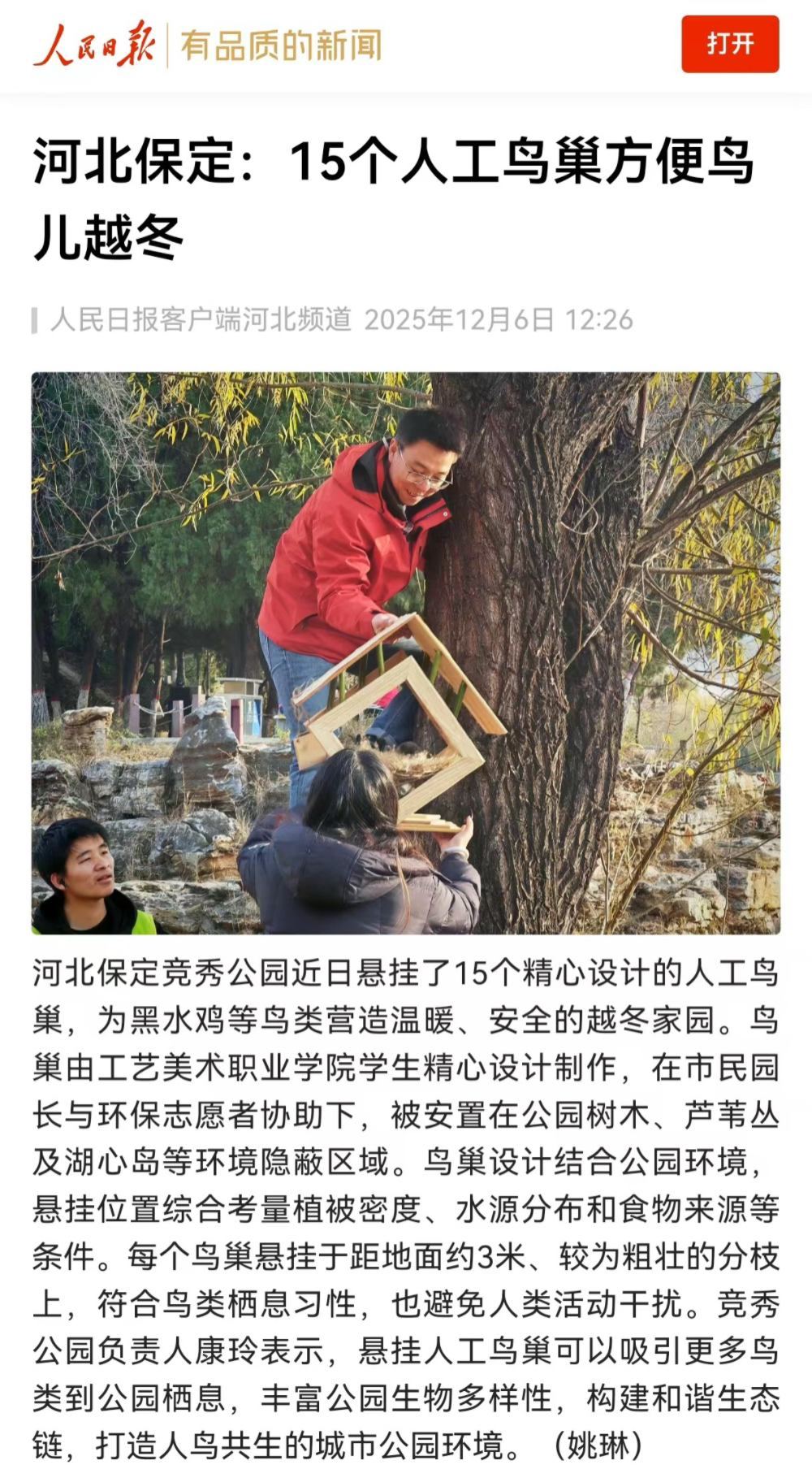 为水鸟筑“暖巢”,我校时尚工艺系师生这场暖心行动被人民日报、凤凰网等多家媒体报道!