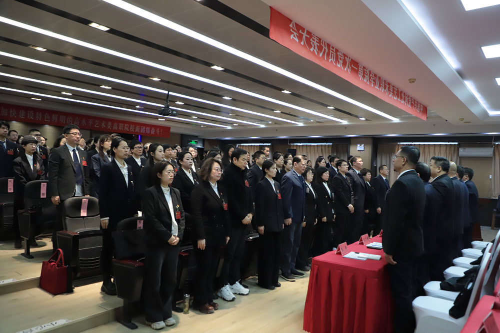 孙斌强调,全院上下要以钉钉子精神抓部署抓落实,切实把大会确定的各项决策部署转化为推动学院高质量发展的生动实践。要旗帜鲜明讲政治,在把牢办学方向上彰显新担当;要立德树人强育人,在培育时代新人上展现新作为;要瞄准双高重实效,在办学能力提升上实现新跨越;要团结奋斗聚合力,在凝聚发展共识上开创新局面;要从严治党守底线,在营造清朗生态上树立新标杆。以更加昂扬的精神状态和更加务实的工作作风,为把河北工艺美术职业学院建设成为特色鲜明、区域领先、国内知名、具有国际影响力的高水平艺术类高职院校而努力奋斗!