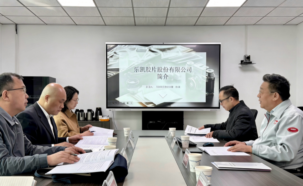 孙斌一行在乐凯胶片副总经理陈焱的陪同下,参观了企业展馆与电商直播间,详细了解企业从“民族胶卷之王”向国内领先新材料系统服务商的战略转型历程,及其在国潮品牌升级、数字化转型等方面的创新实践。