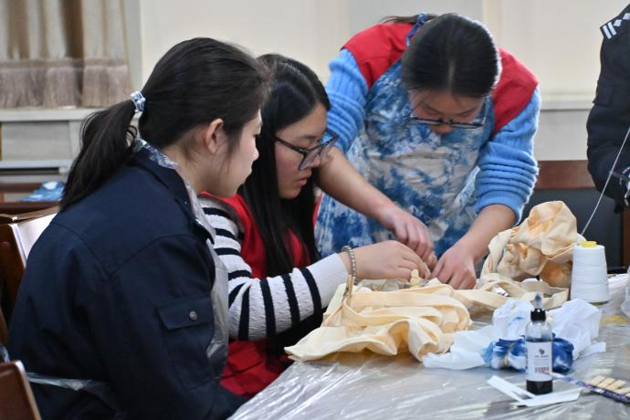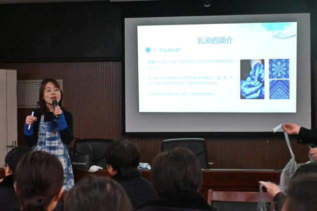 活动现场,我系师生发挥专业特色,将非遗扎染技艺与志愿服务深度融合,细致讲解扎染历史文化与制作技法,示范捆扎、染色、固色、晾晒等流程。