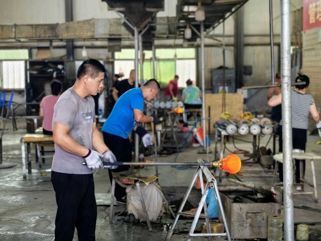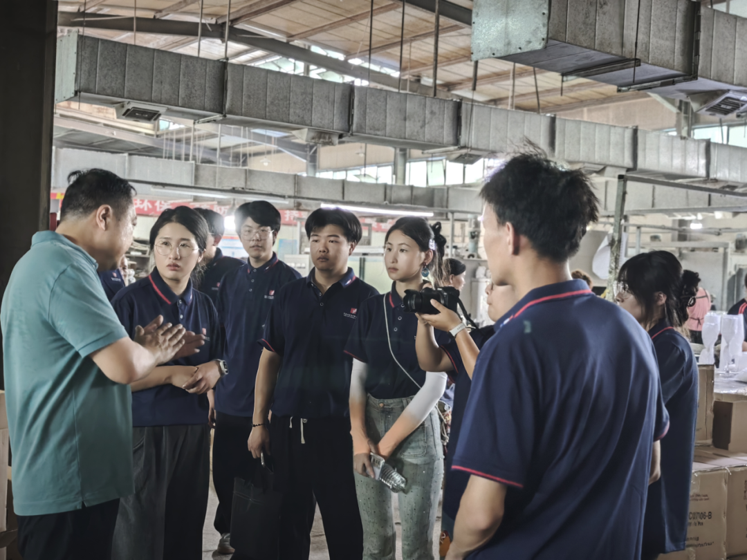 在保北玻璃制品有限公司,队员们走进生产一线,近距离观摩刻花、吹制、烧制等工艺流程,深刻感受到传统技艺在现代工业体系中的传承与发展。玻璃工匠专注细致的操作,体现着精益求精的匠心精神,也让同学们对“工艺”与“工业”之间的融合有了更直观的认识。