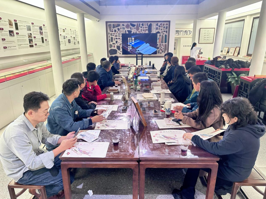 座谈会上,双方代表重点围绕课程体系设计、非遗技艺教材联合开发等核心议题展开了深入研讨,活动还安排了简易水印装裱体验环节,让考察团成员亲身感受传统技艺的魅力。