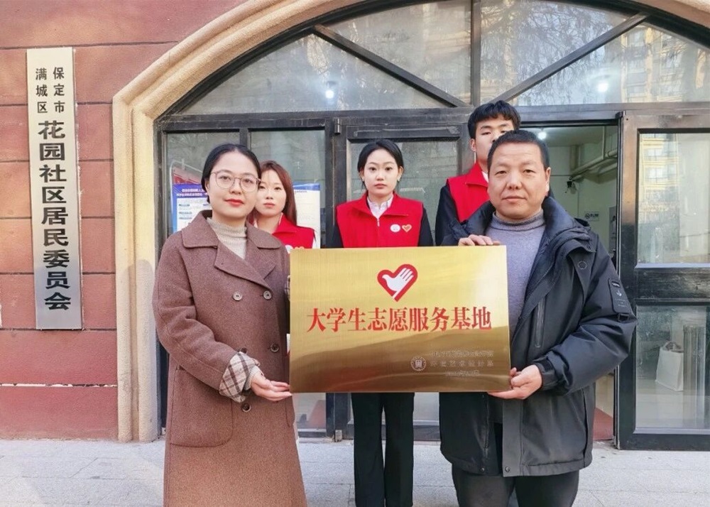 2025年12月24日下午,河北工艺美术职业学院环境艺术设计系与满城镇花园社区举行“党建联建基地”与“大学生志愿服务基地”揭牌仪式。