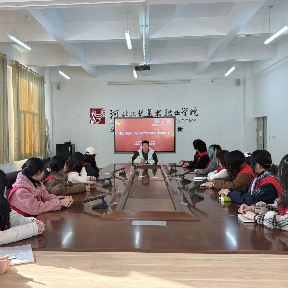 在2025年国际志愿者日来临之际,2025年12月3日,河北工艺美术职业学院视觉传达设计系志愿服务队开展专题学习活动,深入领会习近平总书记致中国志愿服务联合会第三届会员代表大会的贺信精神,凝聚“奉献、友爱、互助、进步”的青春力量,让志愿精神在设计青年心中扎根生长。视觉传达设计系团总支负责人赵骄阳出席学习。系团总支志愿服务部全体成员、系志愿服务队各品牌负责人及志愿者代表参加学习。