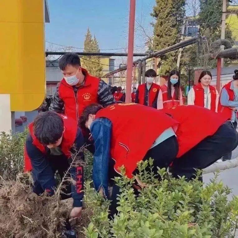 在植树活动现场,美术系青年志愿者们身穿红色马甲,有的手拿铁锹,有的提浇水壶,迅速投入到植树行动中。此次活动的开展,表现出青年志愿者的青春风采,营造出服务社区、奉献社会的良好氛围,让大家都成为生态环境的守护者和实践者,为建设天蓝、地绿、水清的美丽保定贡献出自己的力量!