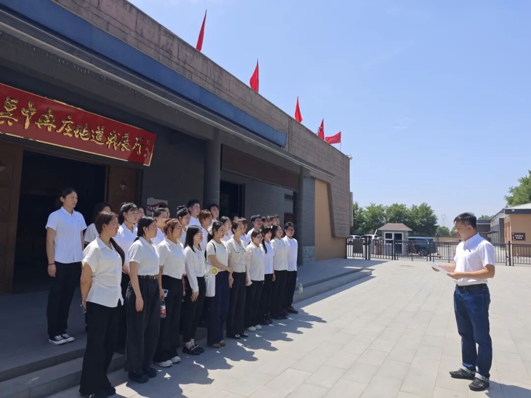 党员教师与入党积极分子在讲解员的带领下,怀着崇敬的心情步入纪念馆展厅,聆听红色故事,认真观看冀中沦陷、国民蒙难、冀中人民奋起抗战等主题展览,重温中国共产党带领冀中人民反抗日军侵略的英勇斗争历程。